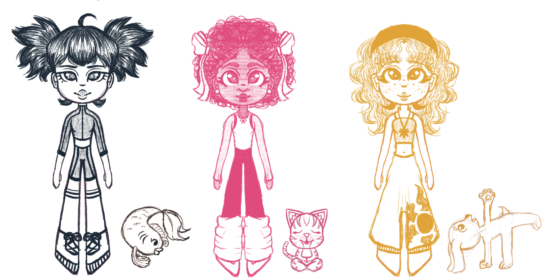 Most ideation for balanced beauties came from sketching and character/color studies. There are also product concept studies.