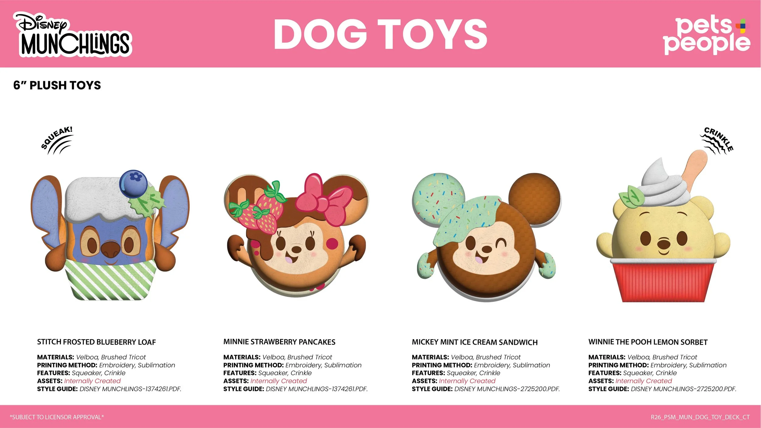 A line of scened dog toys based around the Disney Munchlings brand. Designed for PetSmart and for Stock retailers, and presented directly to Disney’s Licensing team with glowing reviews.