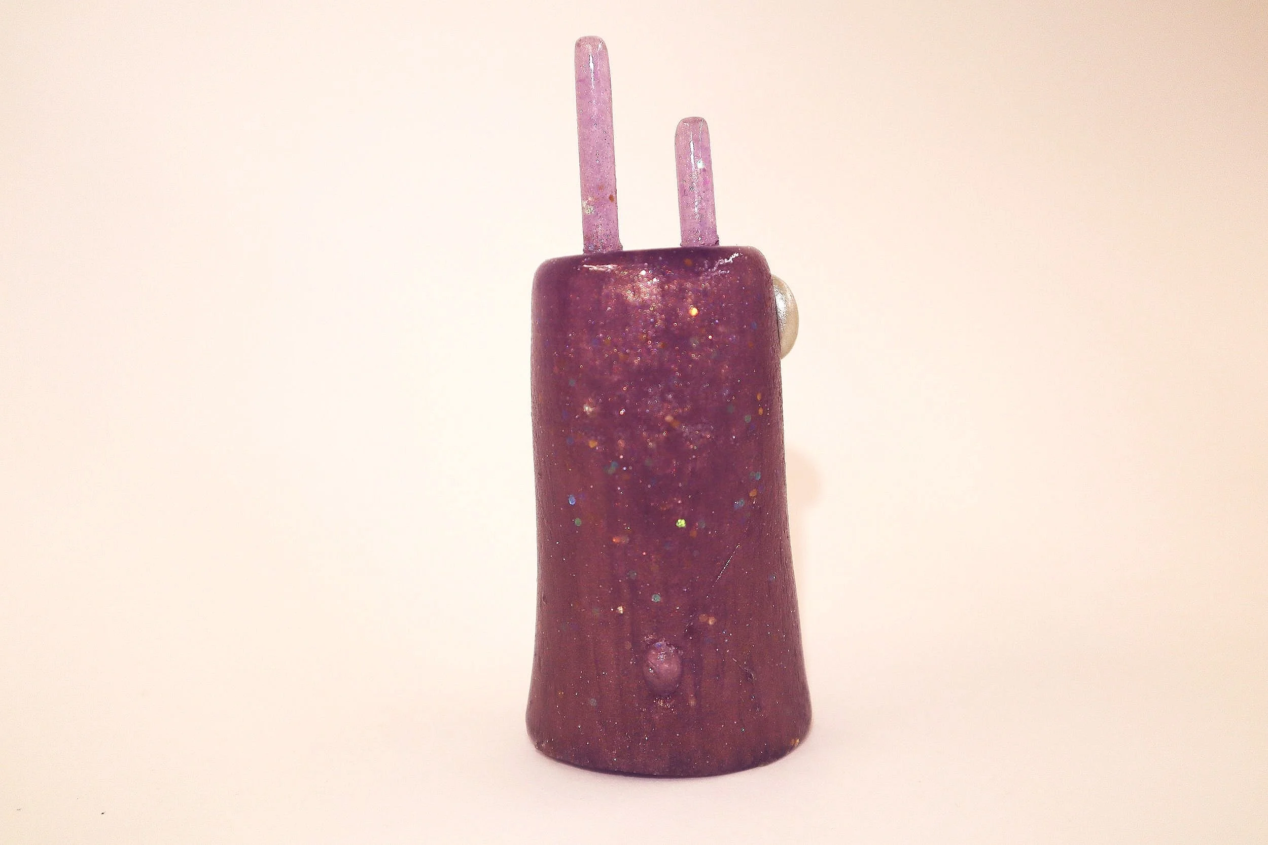 This is one out of a series of bunnies I created. Coming from a singular mold, casted in liquid plastic, This bunny has an out of this world aesthetic!