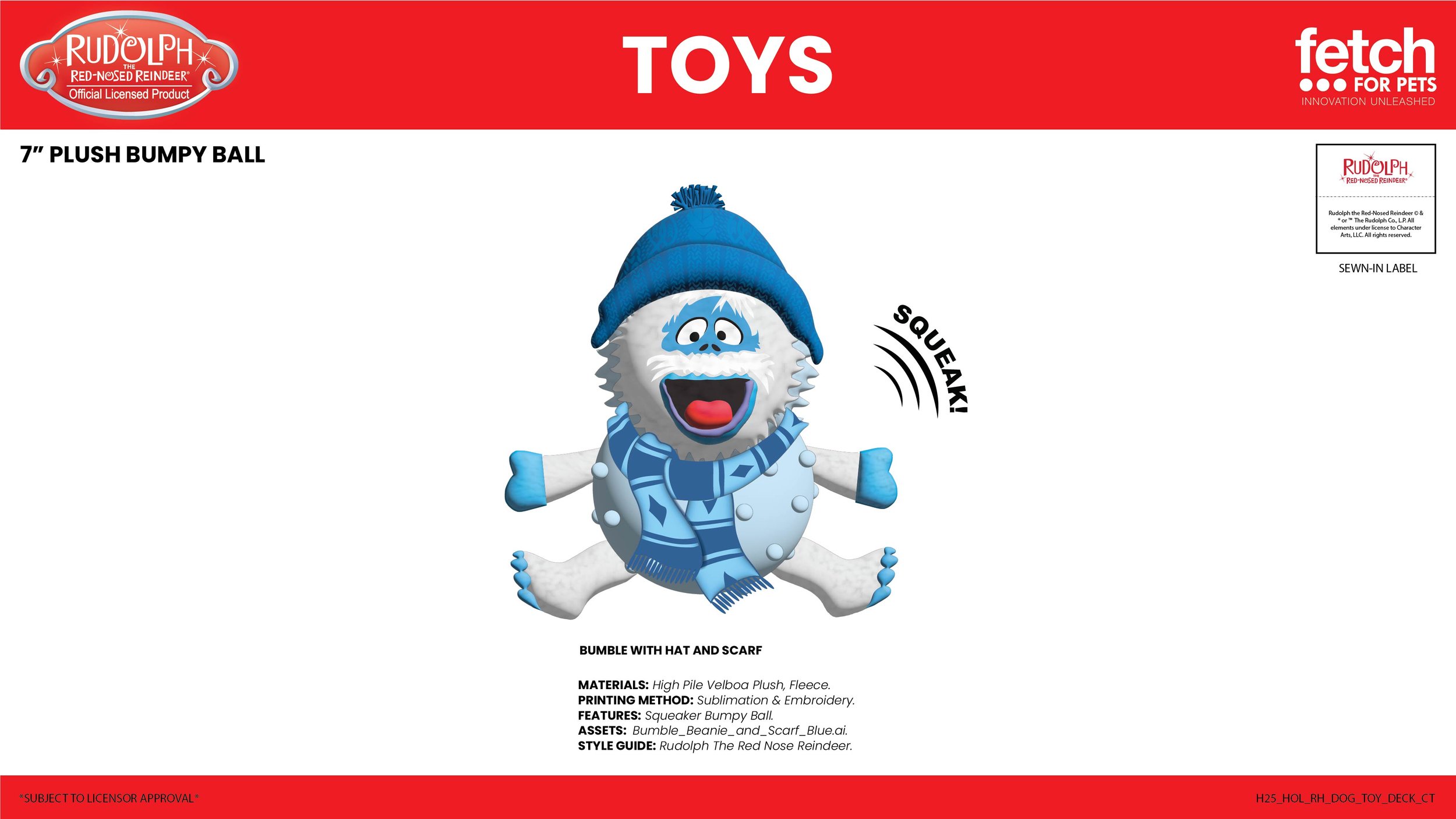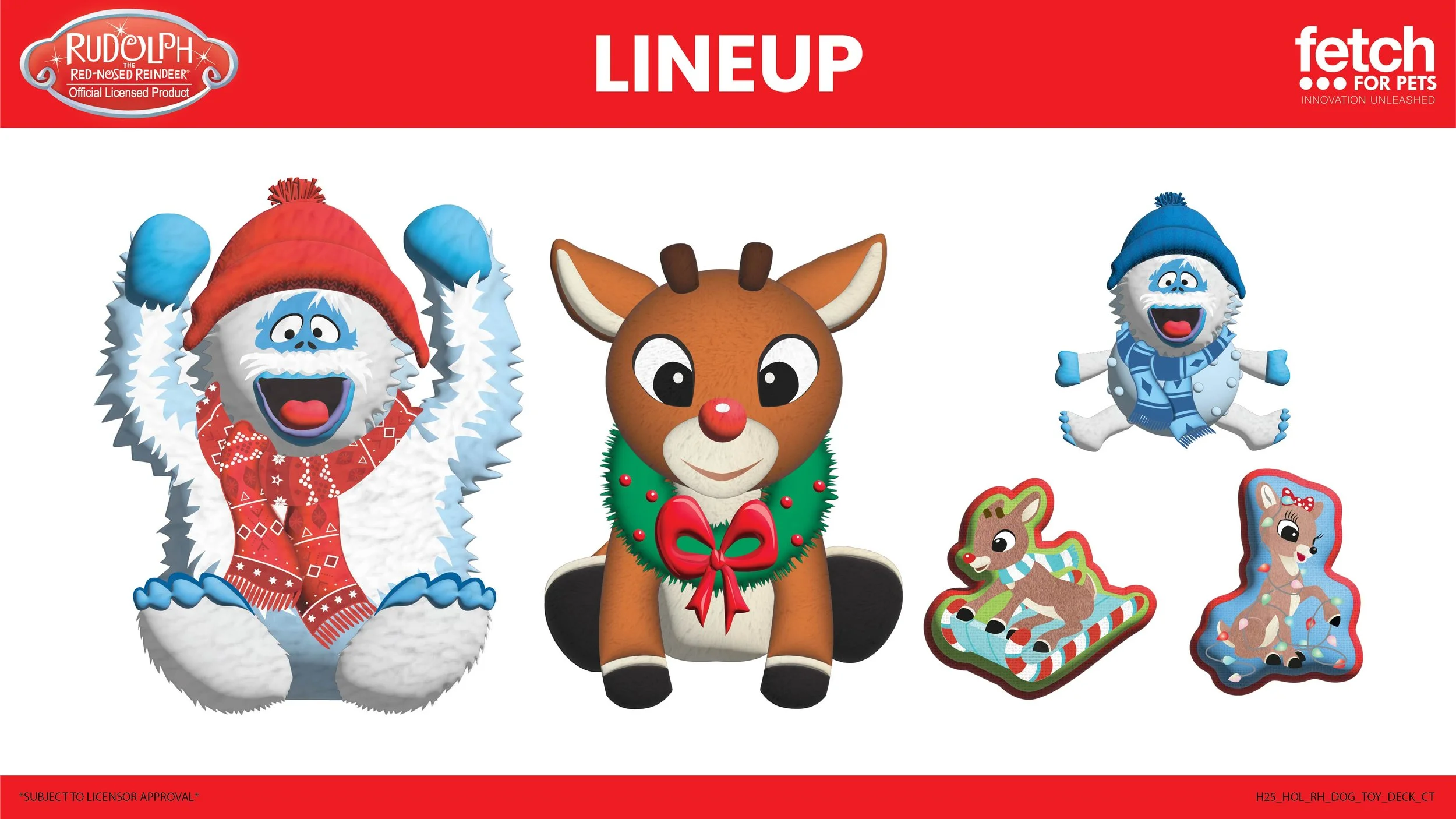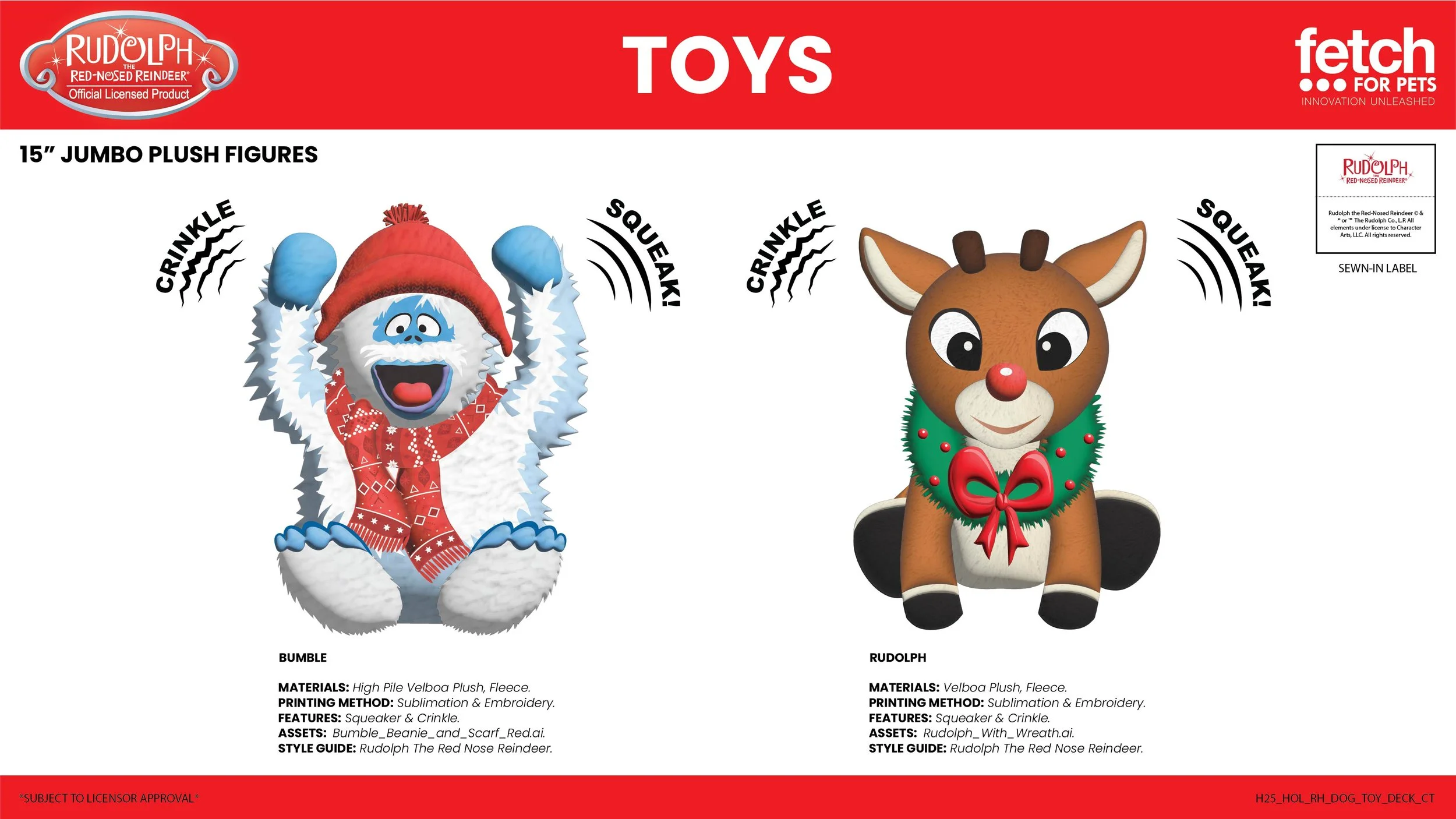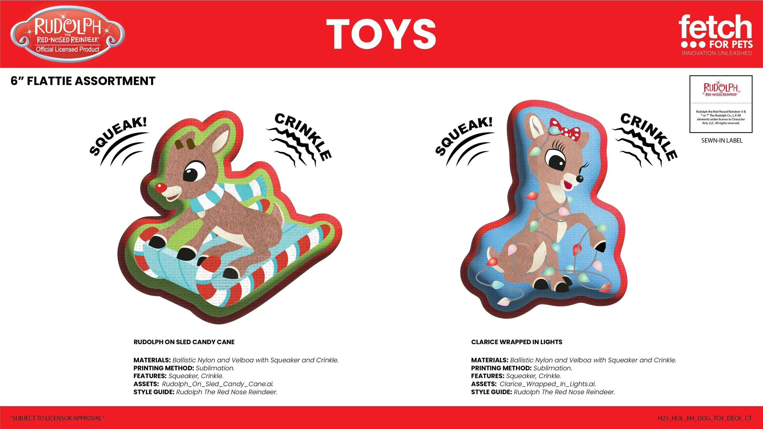 A line of Holiday dog toys based around Rudolph the Red Nosed Reindeer, to be sold at all major retailers.